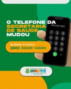 A Prefeitura de Horizonte através da Secretaria de Saúde informa a todos os horizontinos que o telefone para contato da Secretaria de Saúde mudou.