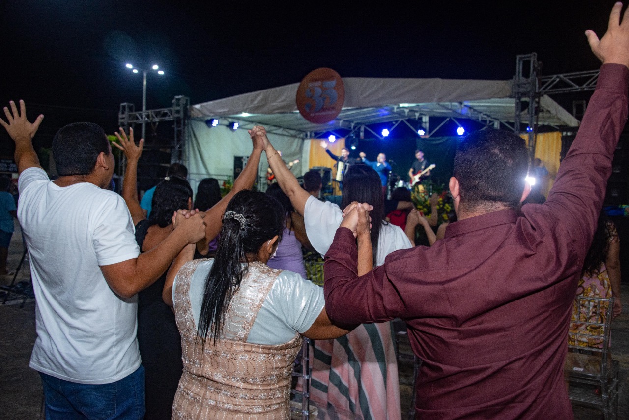 Momentos de oração, clamor e hinos de adoração a Deus fizeram parte do culto evangélico em homenagem aos 35 anos de emancipação política de Horizonte. A celebração aconteceu na noite de sábado (05/03), na Praça da Bíblia, e contou com a participação da pregradora Priscila Costa. Houve ainda shows musicais com Cícero Oliveira, Marcelo Medeiro, e Leonildo e Banda emocionando todo o público presente.