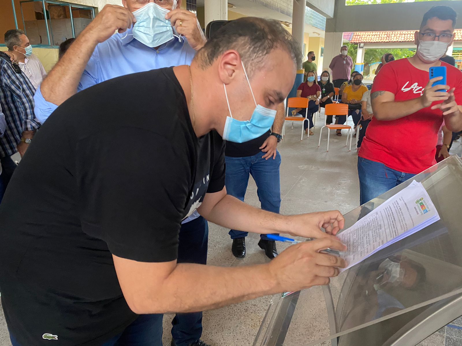 Tem obras chegando em mais bairros da nossa cidade! Se liga aí! Hoje (25/02), foi realizada a assinatura da ordem de serviço para reforma do CEI Stela Maria Naspolini do bairro Buenos Aires. E para manutenção do Ginásio José Wermison de Araújo Pereira (Jenipapeiro) e das quadras: