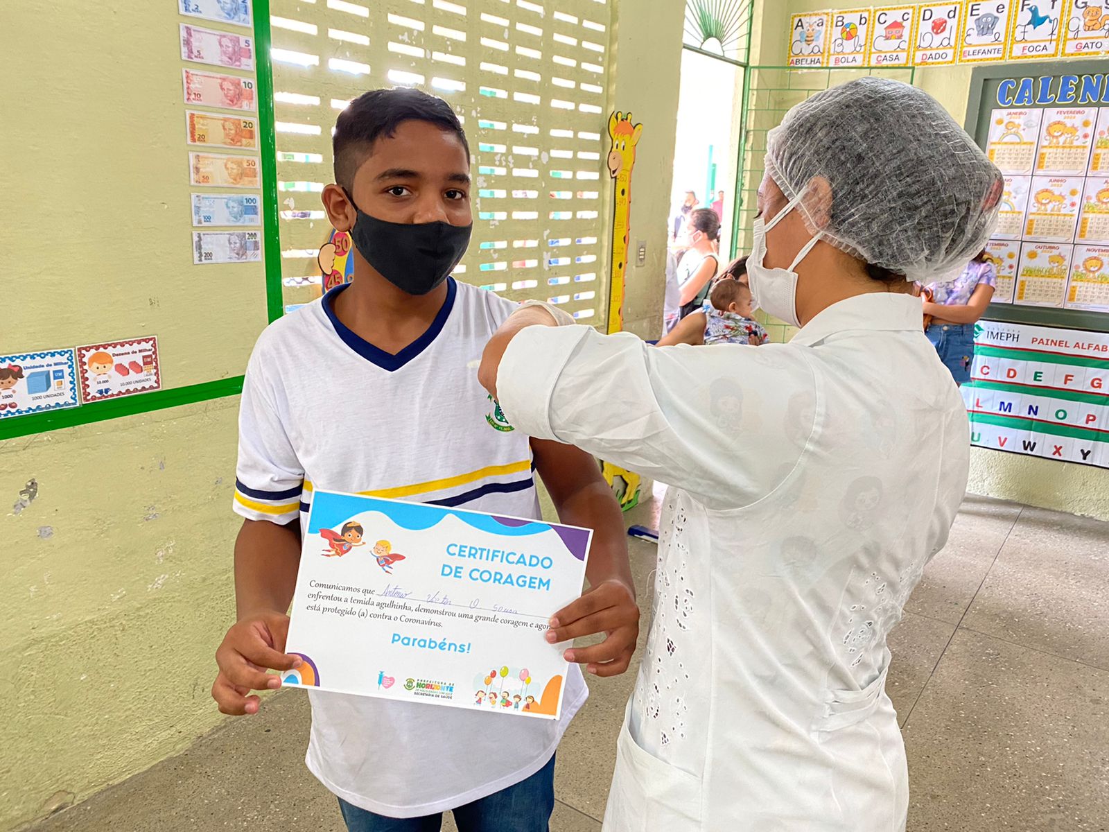 Reforçamos que as crianças de 5 anos que estão sendo vacinadas são estudantes dos Centros de Educação Infantil Pedro Nogueira e Maria José, que tem prioridade na vacinação de acordo com o plano nacional de imunização por serem da comunidade Quilombola.