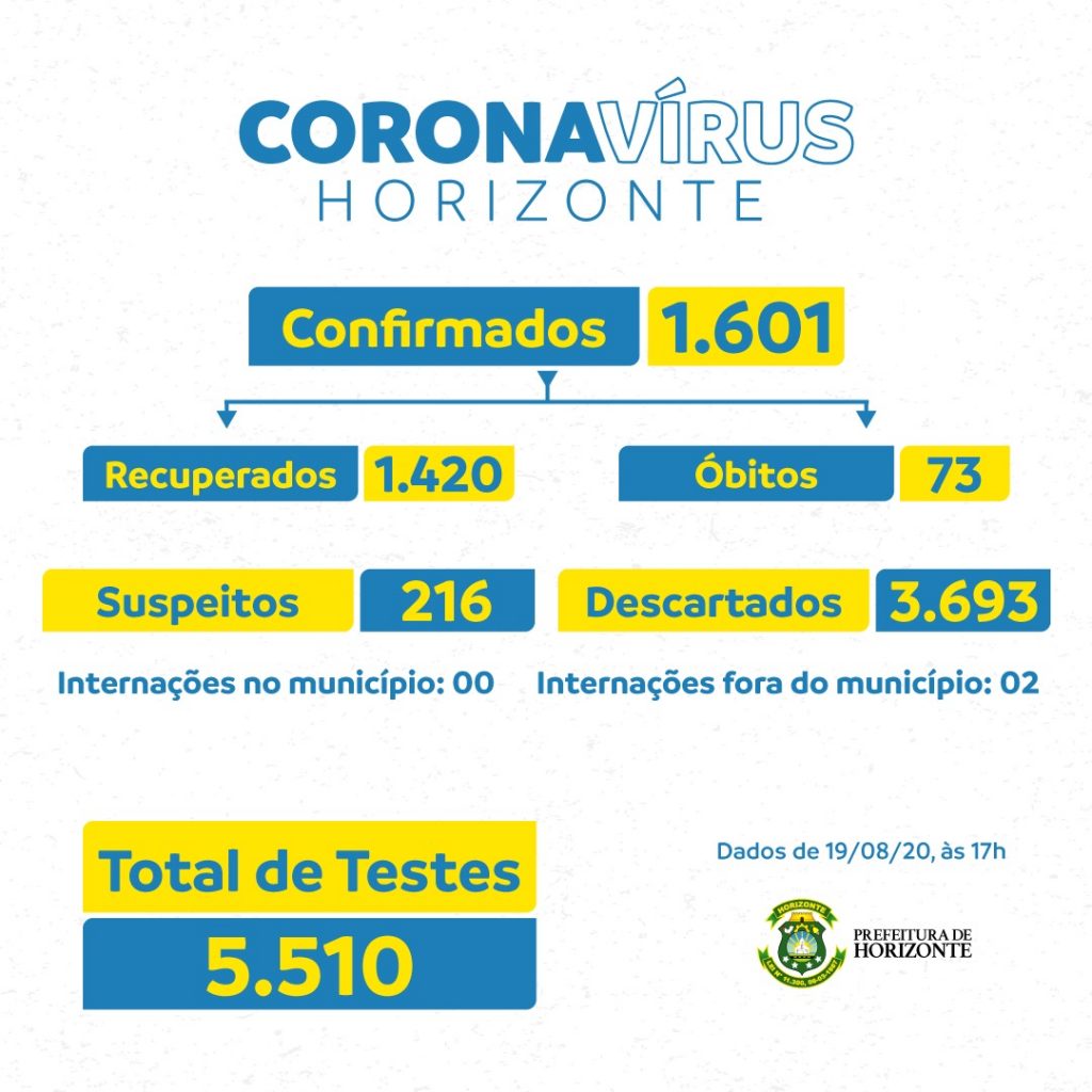 Secretaria de Saúde de Horizonte divulga boletim epidemiológico para Covid-19 desta quarta-feira (19)
