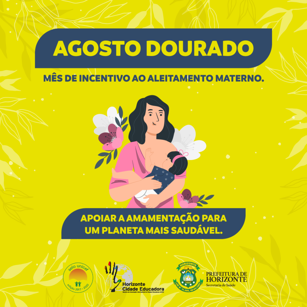 Agosto Dourado é o mês de incentivo ao aleitamento materno e a Prefeitura de Horizonte apoia esta iniciativa.