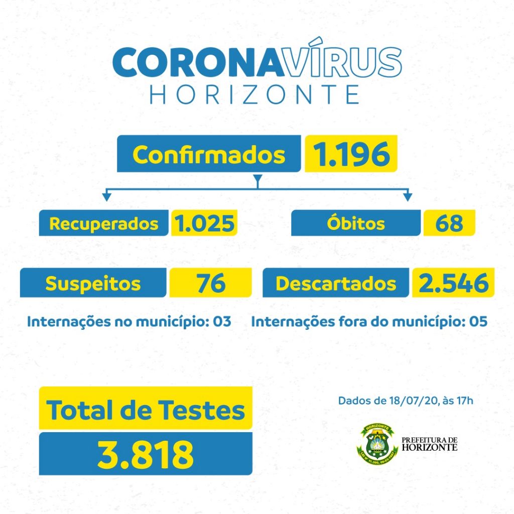 A Prefeitura de Horizonte intensificou a testagem de casos para atuar na prevenção do contágio. É importante ressaltar que cada cidadão deve fazer a sua parte, respeitando as regras de distanciamento e, principalmente, usando máscaras para se proteger e adotando medidas de higiene constante.
