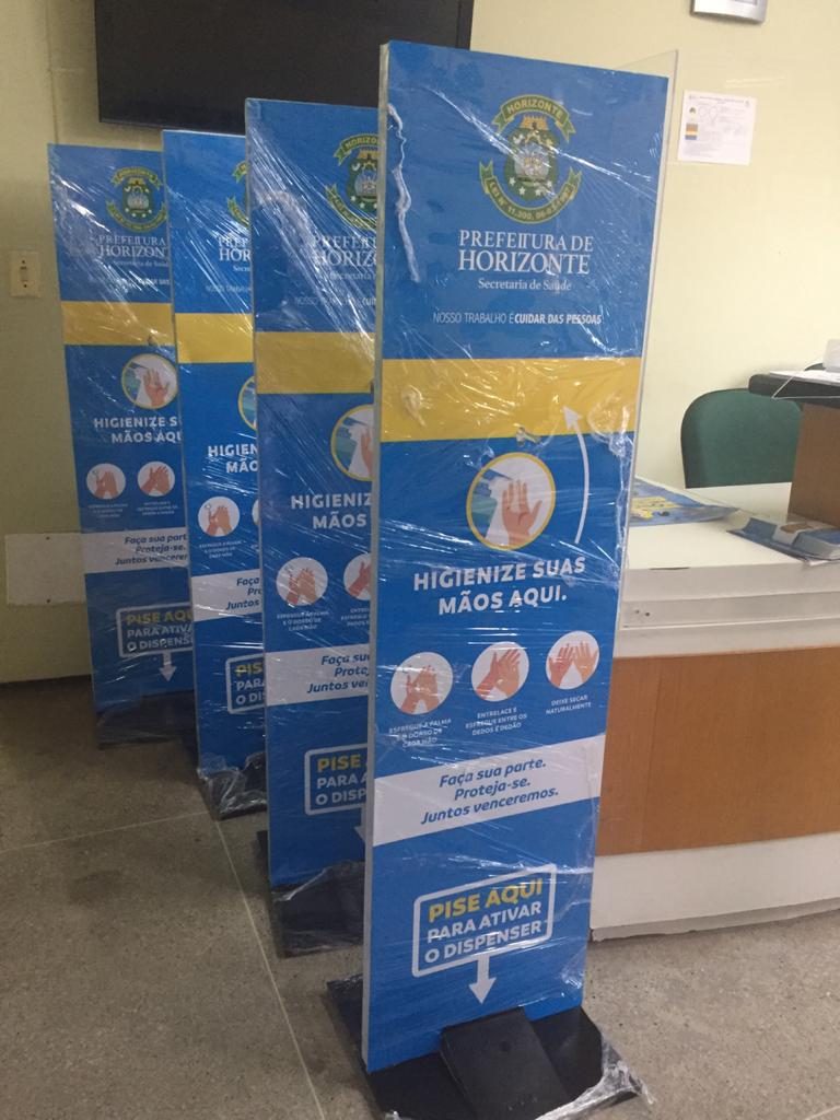 A Prefeitura de Horizonte, através da Secretaria de Saúde, adquiriu e instalou 30 totens de higienização em todas as unidades de saúde do Município em uma ação para garantir mais segurança aos cidadãos e profissionais nesses equipamentos.