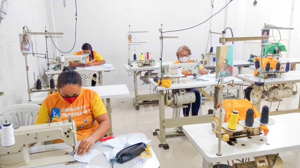 Desde a semana passada, os alunos do curso de Corte & Costura do Espaço do Trabalhador, equipamento da Prefeitura de Horizonte, estão trabalhando na confecção de máscaras de tecido para distribuição para os profissionais e comunidade.