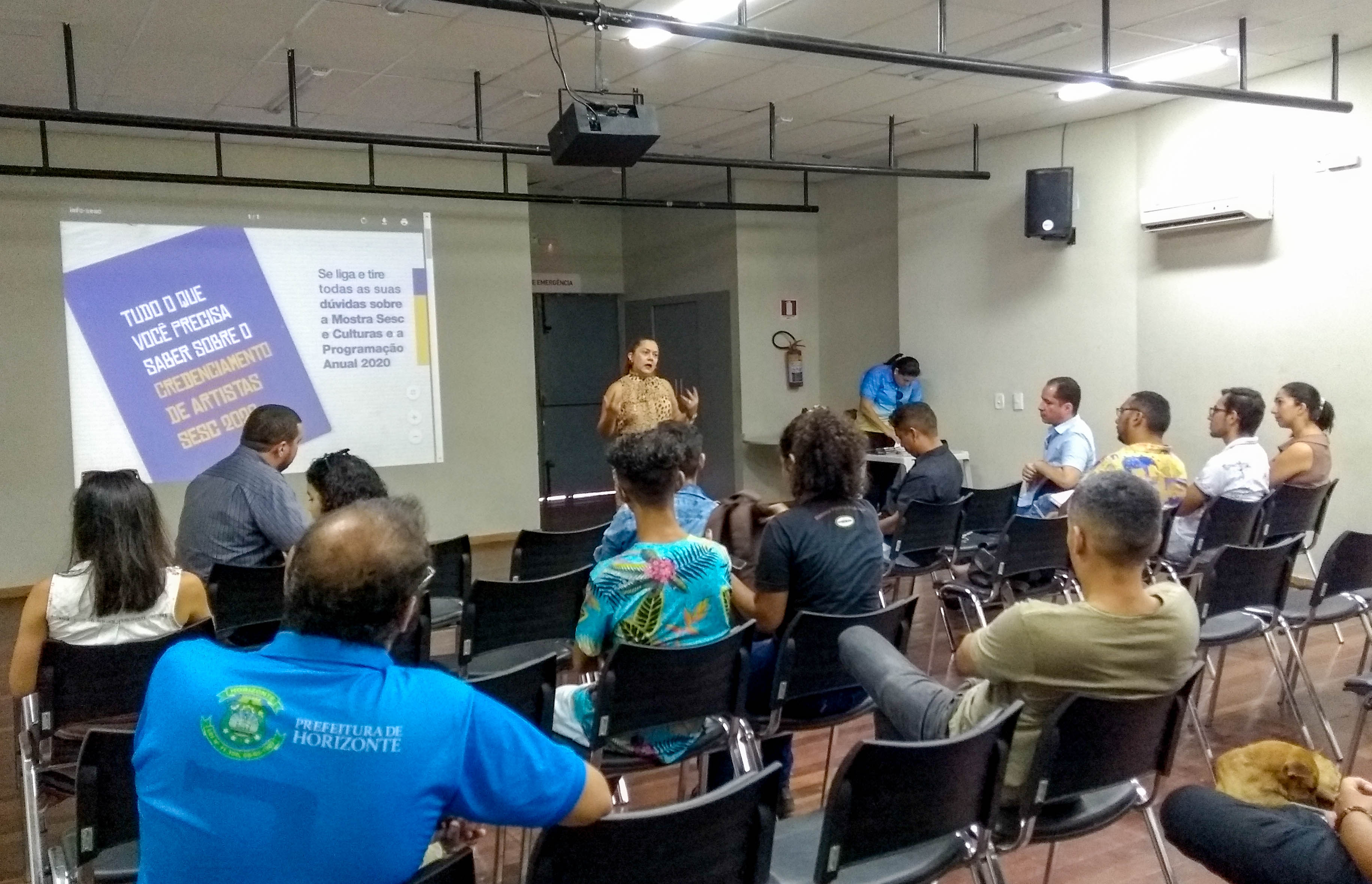 Artistas e representantes de grupos artísticos de Horizonte receberam na última sexta-feira, 24, o gerente do Programa de Cultura do Sesc, Chagas Sales, no Cineteatro do CEU, para orientações sobre o credenciamento de artistas e grupos artísticos na Programação Anual de 2020 e Mostra Sesc de Culturas. A mediação do encontro aconteceu com apoio da Secretaria de Cultura, Esporte, Lazer e Juventude.
