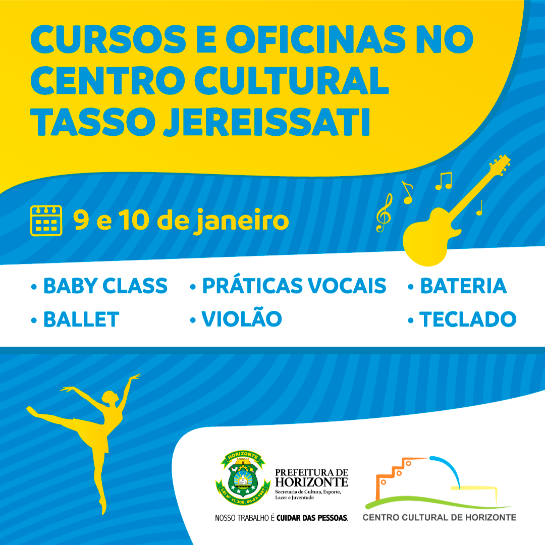 Nos próximos dias 9 e 10 de janeiro, o Centro Cultural Tasso Jereissati, equipamento da Secretaria Municipal de Cultura, Esporte, Lazer e Juventude, abre vagas limitadas para cursos de Dança e Música.