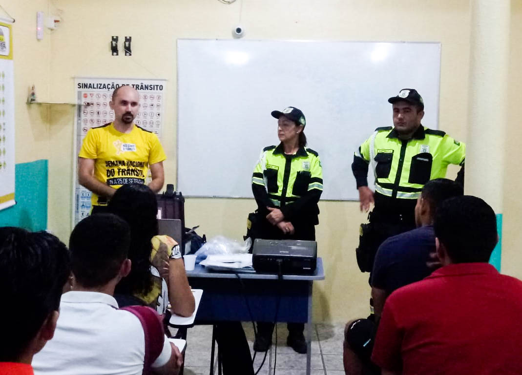 Conforme programado, os agentes organizaram palestra sobre a gestão do trânsito, as infrações e acidentes mais recorrentes, assim como a desmistificação da profissão e sua atuação cotidiana junto a autoescolas localizadas no Município.