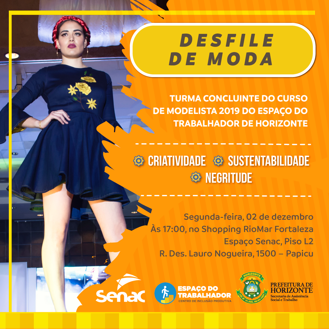 Mãe de três filhos e desempregada, a artesã Perlla de Oliveira, 30, encontrou no curso de Modelista oferecido pelo Espaço do Trabalhador, equipamento da Prefeitura Municipal de Horizonte, na Região Metropolitana de Fortaleza, uma nova oportunidade de trabalho. Agora com novo propósito, ela está investindo na abertura de sua própria empresa de confecção e customização de roupas e acessórios em linha sustentável. As primeiras criações com seu nome e também de outros 16 alunos do curso serão apresentadas nesta segunda-feira, 02 de dezembro, em desfile aberto Moda Sustentável ao público no Espaço Senac, no Shopping RioMar Fortaleza, às 17h.