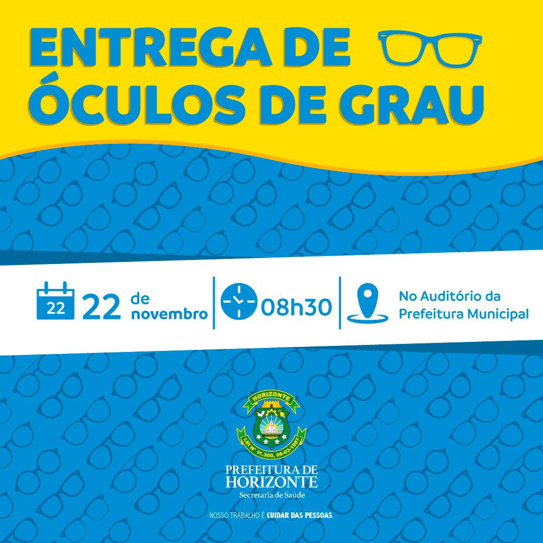 A Prefeitura de Horizonte, através da Secretaria de Saúde, realiza nesta sexta-feira, 22, às 8h30, no auditório do Palácio Municipal, a entrega de doação de 27 óculos de grau aos beneficiários do Programa Saúde Ocular.