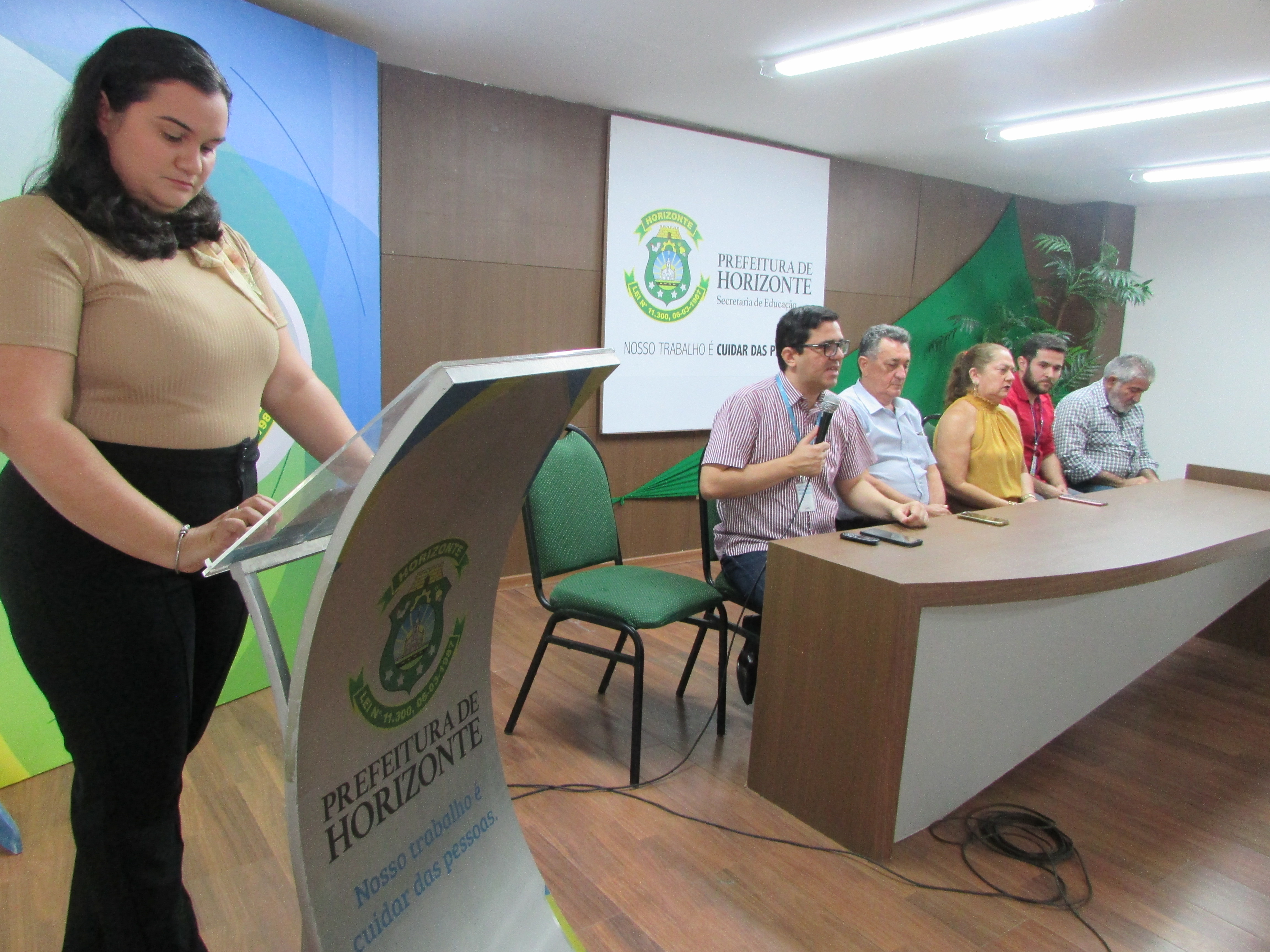 A Prefeitura Municipal de Horizonte realizou nesta segunda-feira, 21, no Centro Administrativo Domingão, audiência pública para consulta e esclarecimentos sobre o programa de universalização do abastecimento de água e esgotamento sanitário no Município.