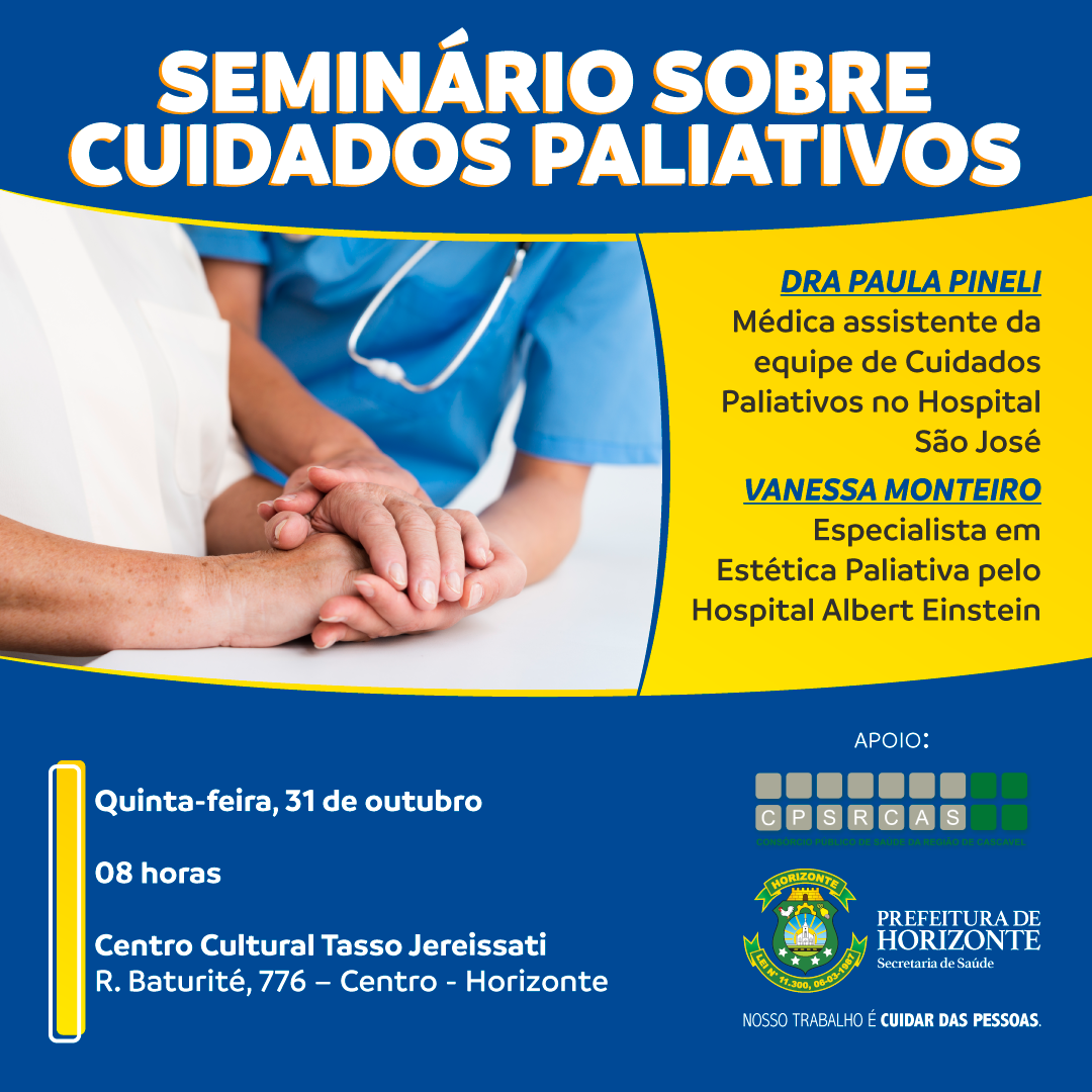 A Prefeitura Municipal de Horizonte está apoiando a realização do Seminário Cuidados Paliativos marcado para acontecer próxima quinta-feira, 31 de outubro, no auditório da Secretaria de Educação, no Centro Administrativo Domingão.
