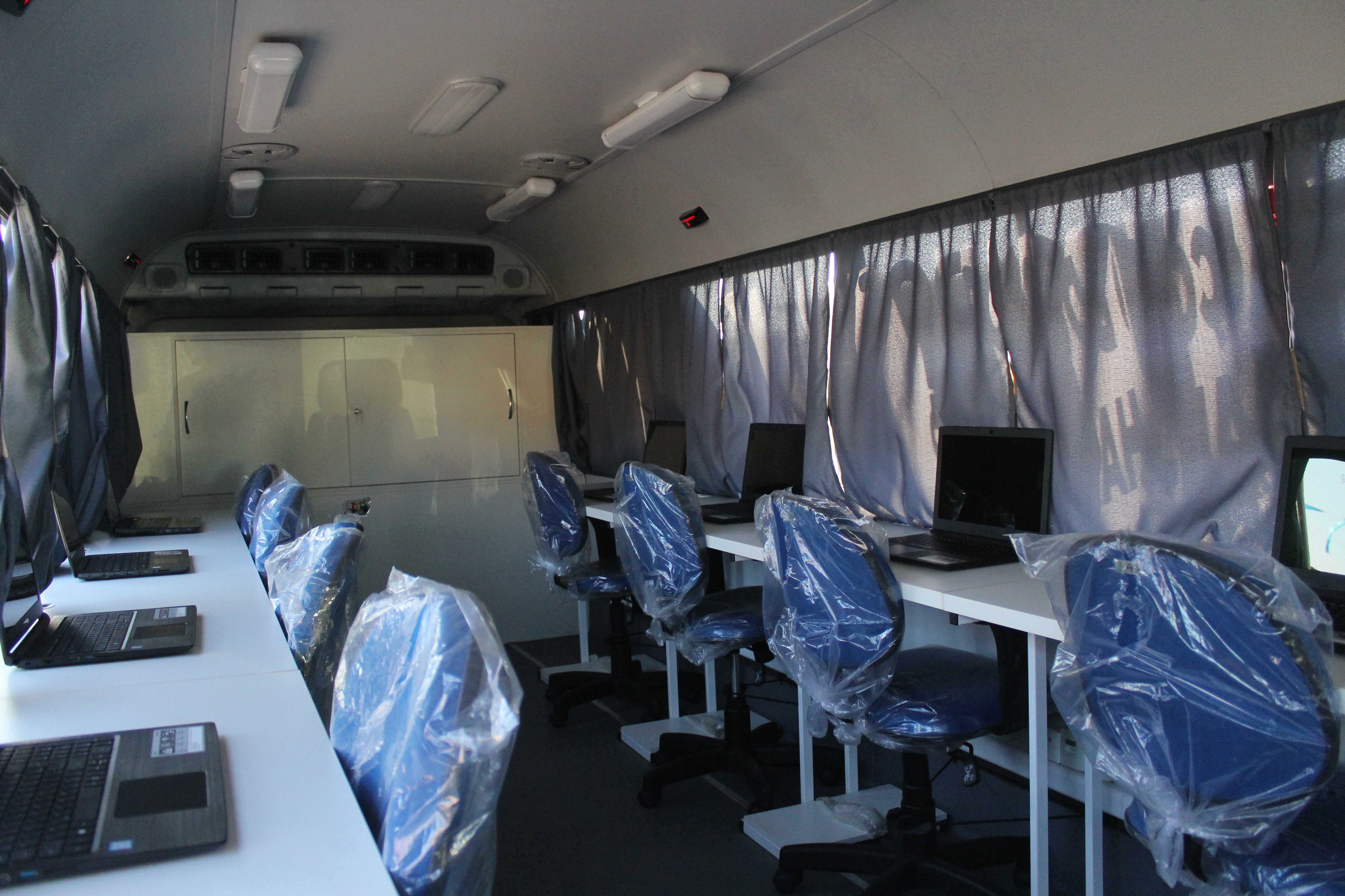 Equipado para realização de cursos administrativos e de informática, a Unidade Móvel do Espaço do Trabalhador é refrigerada e com capacidade para receber até 20 pessoas de uma vez.