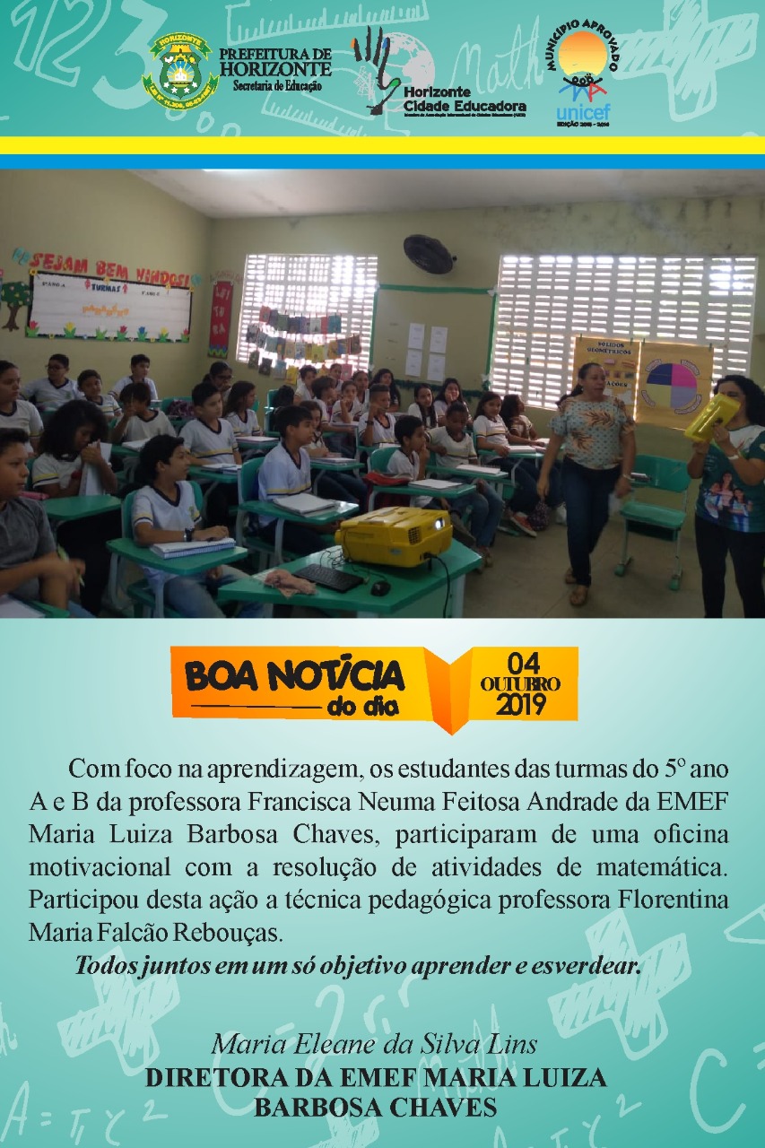 Boa Notícia do Dia: Oficina motivacional EMEF Maria Luiza Barbosa Chaves