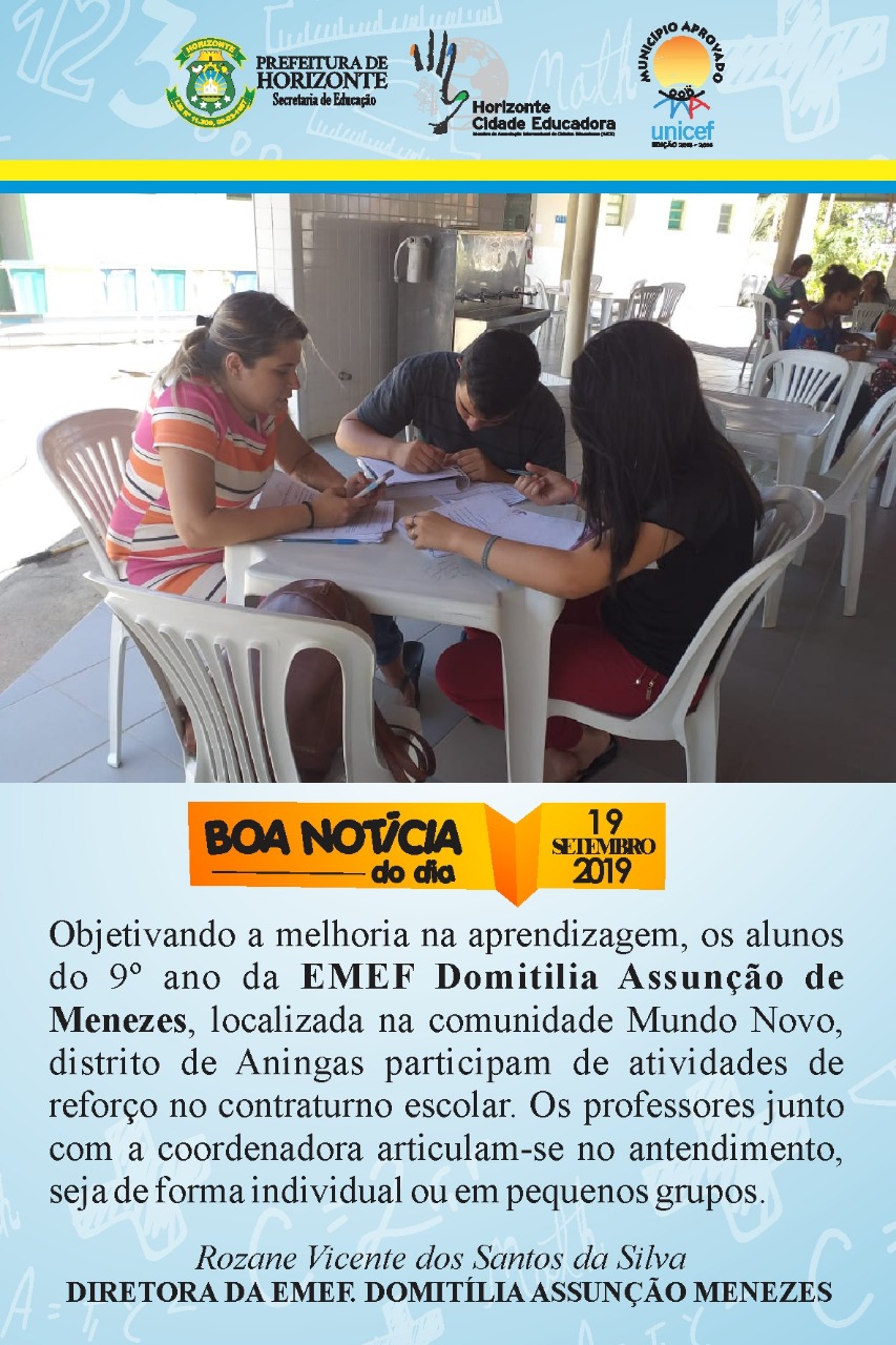 Boa Notícia do Dia: EMEF Domitilia Assunção de Menezes oferece reforço no contraturno escolar
