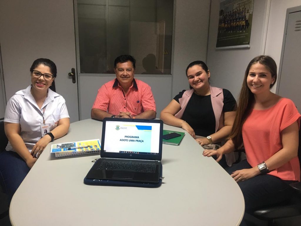 Superintendente de Meio Ambiente, Recursos Hídricos e Agropecuária, Marina Rocha, servidora Anne Andrade e representantes da empresa Haisa na apresentação do projeto "Adote uma Praça".