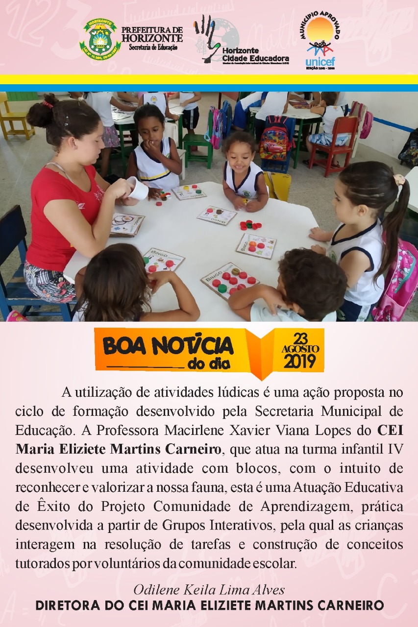 CEI Maria Eliziete Martins Carneiro realiza atividades lúdicas para os alunos da educação infantil