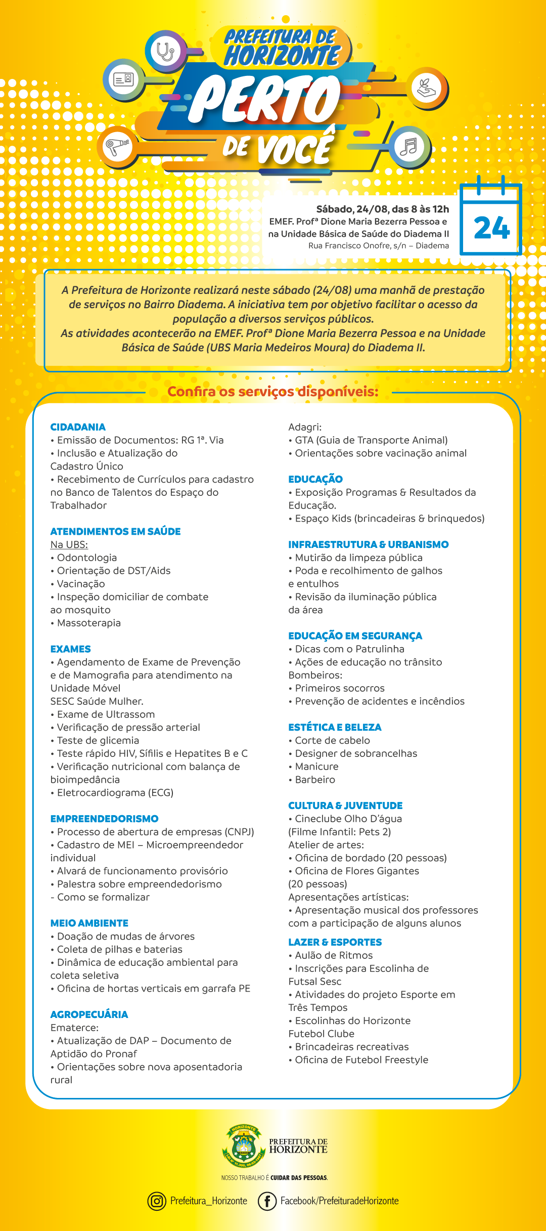 Primeiro evento da Prefeitura de Horizonte Perto de Você será neste sábado (24)