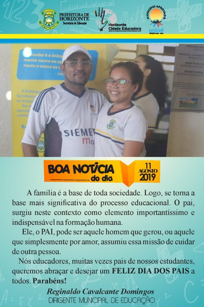 Secretaria de Educação parabeniza todos os pais de estudantes do município de Horizonte