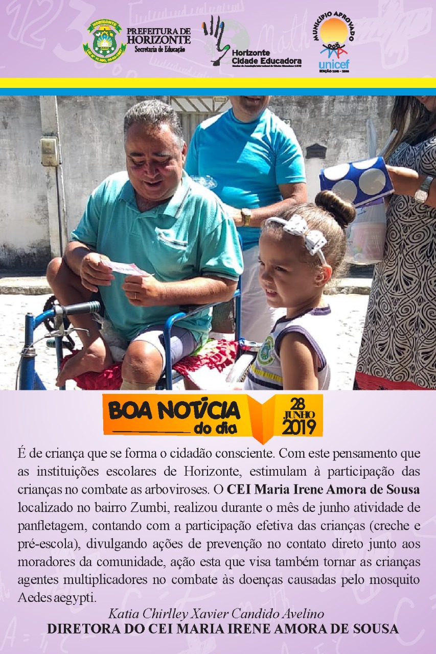 Alunos do CEI Maria Irene Amora de Sousa participam de ações contra as arboviroses