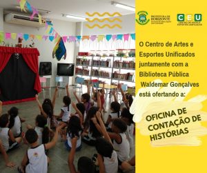 O Centro de Artes e Esportes Unificados CEU, juntamente com a Biblioteca Pública Waldemar Gonçalves está oferecendo a Oficina de Contação de Histórias.