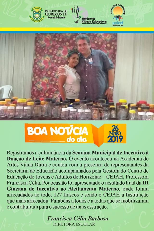 Semana Municipal de Incentivo à doação de leite materno encerra com arrecadação de 127 frascos de vidros na III gincana entre as escolas