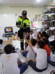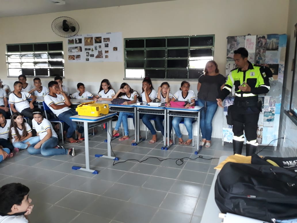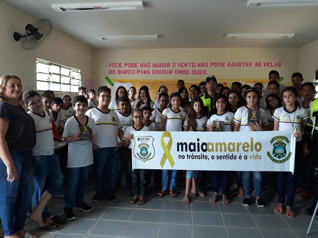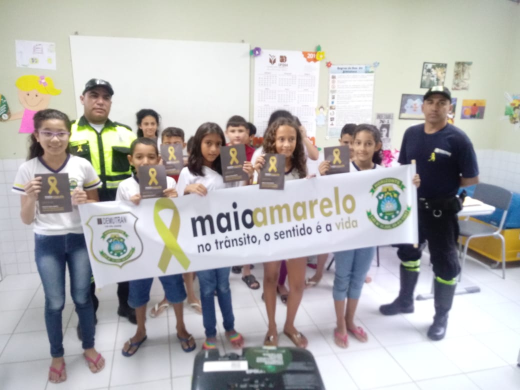Agentes de trânsito do Departamento Municipal de Trânsito e Transporte de Horizonte (Demutran) realizaram palestras sobre o tema segurança no trânsito para crianças e adolescentes do ensino fundamental. As atividades fazem parte das ações alusivas ao Maio Amarelo, mês de alerta e conscientização do trânsito. O tema do movimento este ano é "no trânsito, o sentido é vida". As escolas visitadas foram EMEF Joaquim Antônio da Silva, na comunidade de Catu e a EMEF Geovania Albano de Almeida na comunidade de Coqueiros.