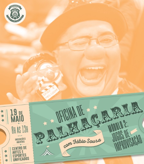 A Secretaria de Cultura, Esporte, Lazer e Juventude em parceria com o Centro de Artes e Esportes Unificados (CEU) está com vagas abertas para a 2ª Edição da Oficina de Palhaçaria Módulo 2 Jogos de Improvisação. A oficina acontece no dia 19 de maio, no CEU, das 8h às 13h, com o facilitador Fábio Sousa (PalhaSUS Horizontino). A idade mínima para participação é de 15 anos e o valor da inscrição é de R$ 20. Mais informações: (85) 99403-2388.