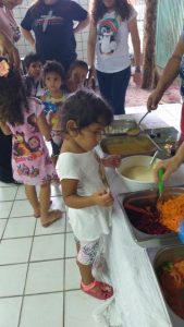 Os pequenos do CEI Maria Irene Amora aprendem desde cedo sobre a importância de uma refeição saudável. Verduras e frutas presentes no self-service para os alunos conhecerem novos sabores, um incentivo para que façam boas escolhas nutricionais. A ação foi um sucesso.