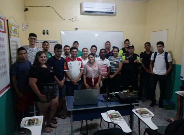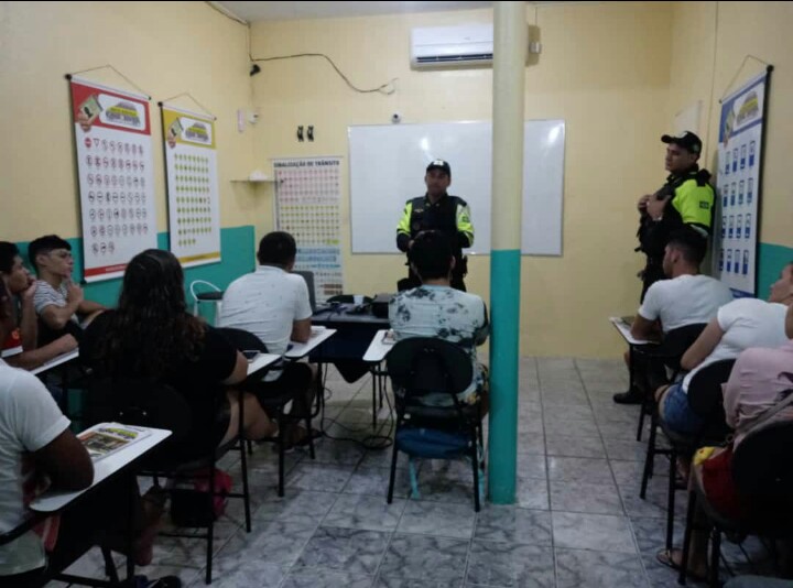 Agentes de Trânsito do Demutran visitam autoescola Favorita em mais uma ação do programa do Alô PPD (Permissão para Dirigir), realizado no último dia de aula de legislação de trânsito. O objetivo da iniciativa é reforçar as orientações quanto as normas de circulação e conduta no trânsito já repassadas na autoescola e falar um pouco sobre o trabalho realizado pelo órgão de trânsito para a melhoria da segurança viária no município.
