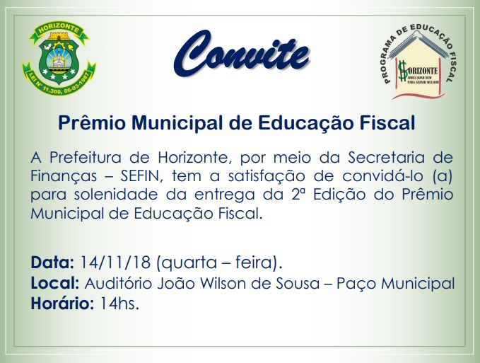 Prefeitura de Horizonte realiza 2ª Edição do Prêmio Municipal de Educação Fiscal