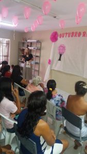 O Cras Aningas realizou nesta quarta-feira (31), uma palestra e café da manhã em alusão ao outubro Rosa. O objetivo do evento foi envolver as mulheres usuárias da política do CRAS enfatizando o mês de cuidados e prevenção ao câncer de mama. O evento contou participação dos alunos do curso de manicure do Espaço do Trabalhador que proporcionaram o momento beleza e a palestra foi ministrada pela Dra. Lúcia Gondim.