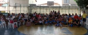 Nesta quarta-feira (15) aconteceu o Encontro Bimestral com as crianças contempladas pelo Programa Primeira Infância no SUAS/Criança Feliz. A iniciativa teve o intuito de trocar experiências, avaliar o desenvolvimento do Programa, bem como o nível de aceitação das visitas domiciliares por parte das famílias e ainda aproximar a gestão do Programa de seus beneficiários. No município de Horizonte, o Programa conta com equipe formada por 1 coordenadora, 1 supervisora (ambas assistentes sociais) e 14 visitadores, que realizam diariamente visitas domiciliares aos beneficiários.