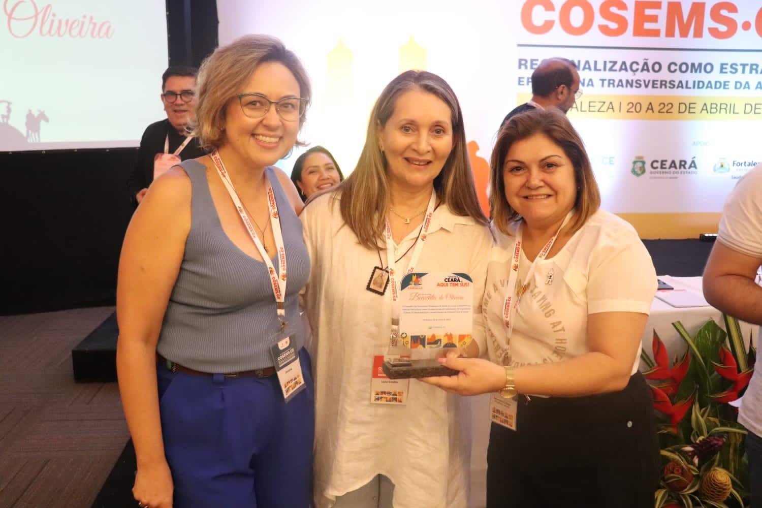 A tecnologia da informação em cooperação à gestão da APS no monitoramento dos indicadores em saúde, realizada pela Secretaria da Saúde de Horizonte, foi reconhecida como experiência de destaque na Mostra "Ceará, aqui tem SUS", que ocorreu na última quinta-feira (20/04), na abertura do XX Congresso do Conselho das Secretarias Municipais de Saúde do Ceará (COSEMS/CE). Das 70 experiências selecionadas pela banca para serem partilhadas, Horizonte ficou entre as 17 melhores, recebendo o troféu Benedita de Oliveira.