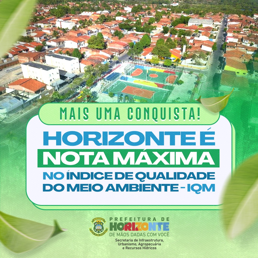 Com ações da Prefeitura de Horizonte por meio da Secretaria de Infraestrutura, Urbanismo, Agropecuária e Recursos Hídricos, através da Superintendência de Meio Ambiente, Horizonte atingiu nota máxima no Índice Municipal de Qualidade do Meio Ambiente (IQM), da Secretaria do Meio Ambiente (SEMA).