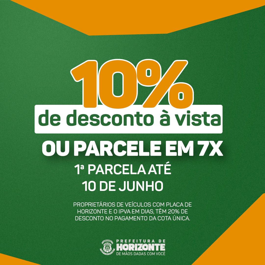 Pague o imposto em cota única e ganhe 10% de desconto ou parcele em 7x, com a 1ª parcela em até 10 de junho, e concorra a prêmios!