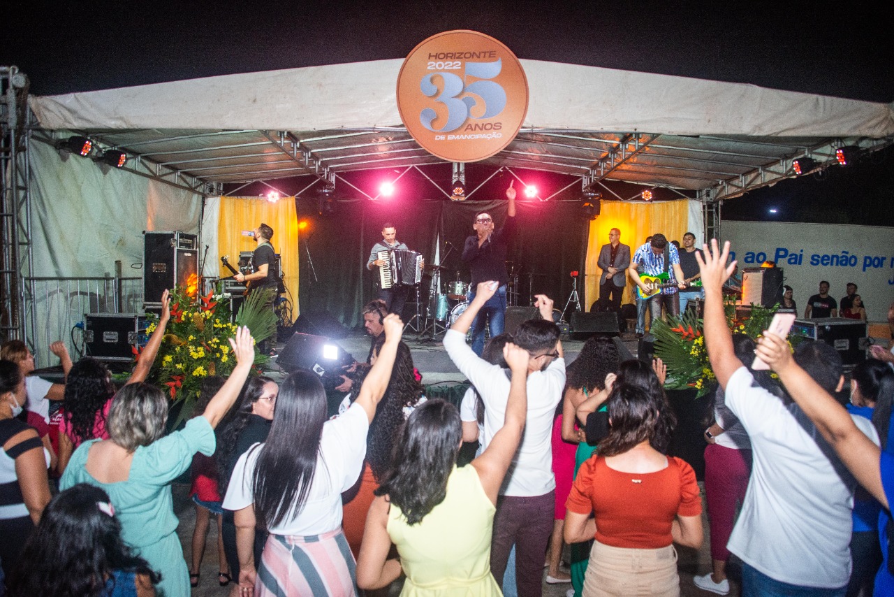 Momentos de oração, clamor e hinos de adoração a Deus fizeram parte do culto evangélico em homenagem aos 35 anos de emancipação política de Horizonte. A celebração aconteceu na noite de sábado (05/03), na Praça da Bíblia, e contou com a participação da pregradora Priscila Costa. Houve ainda shows musicais com Cícero Oliveira, Marcelo Medeiro, e Leonildo e Banda emocionando todo o público presente.