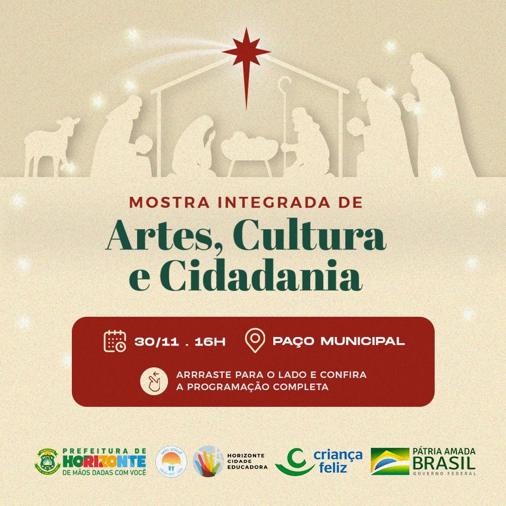 Um fim de tarde emocionante aguarda por você! A Prefeitura de Horizonte irá realizar a Mostra Integrada de Artes, Cultura e Cidadania, com apresentações culturais locais e regionais.