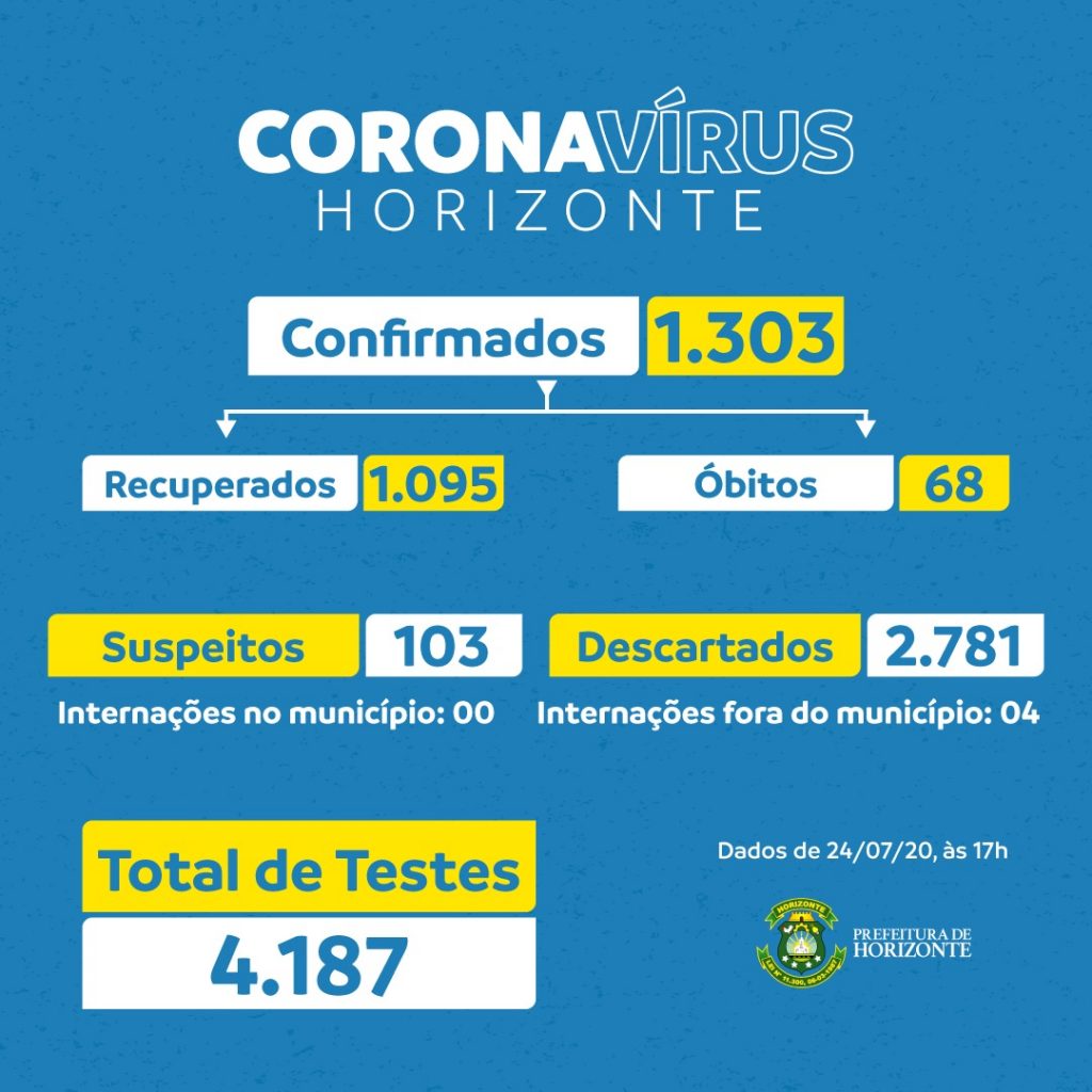 A Prefeitura de Horizonte, através da Secretaria de Saúde, informa que o Município segue estabilizando a curva de contágio pela Covid-19 como resultado das medidas de isolamento social e outras ações de prevenção à sua disseminação.