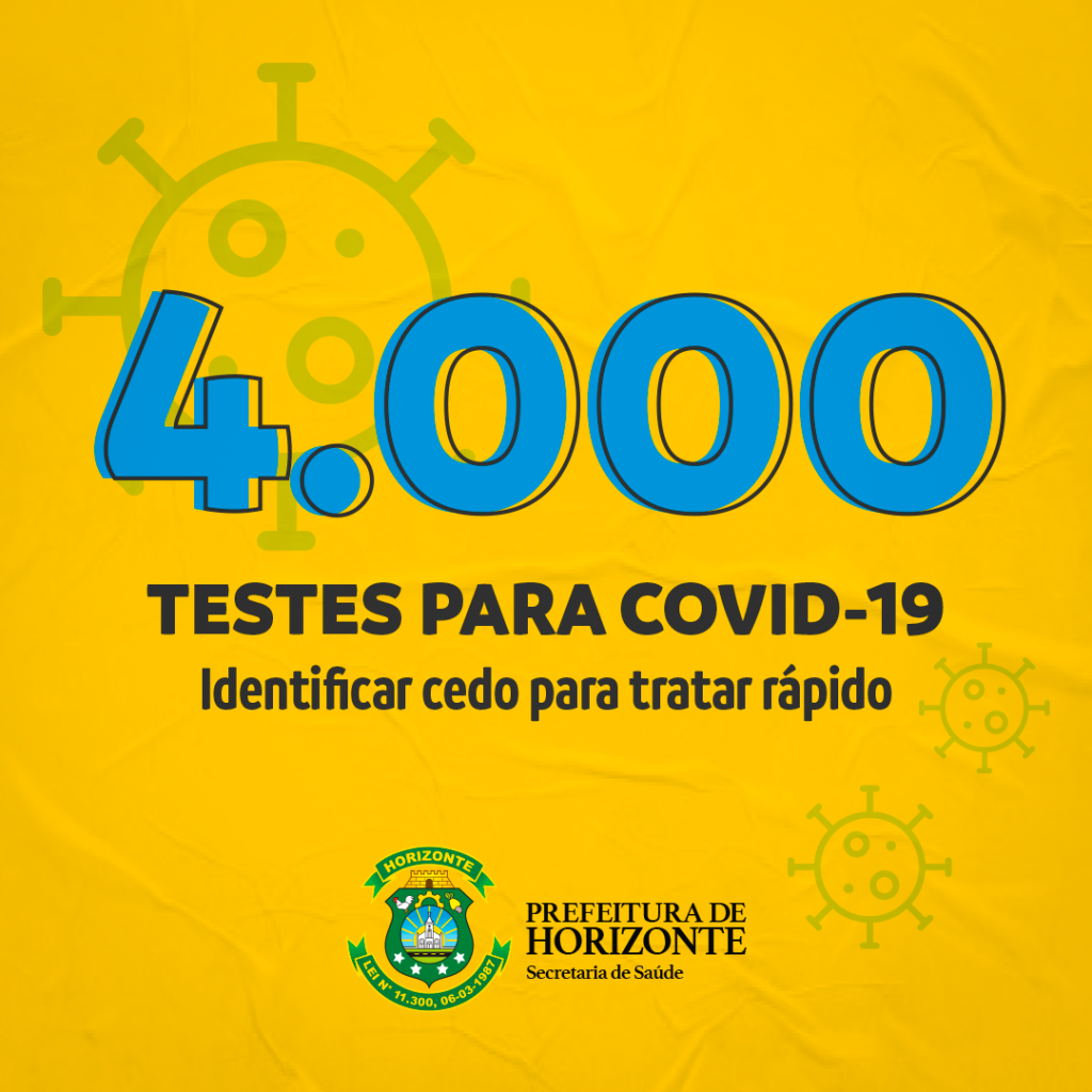 Horizonte alcançou a marca de 4.000 mil testes realizados. Esta ação faz parte do Programa de Testagem implementado pela Prefeitura de Horizonte, por meio da Secretaria de Saúde.
