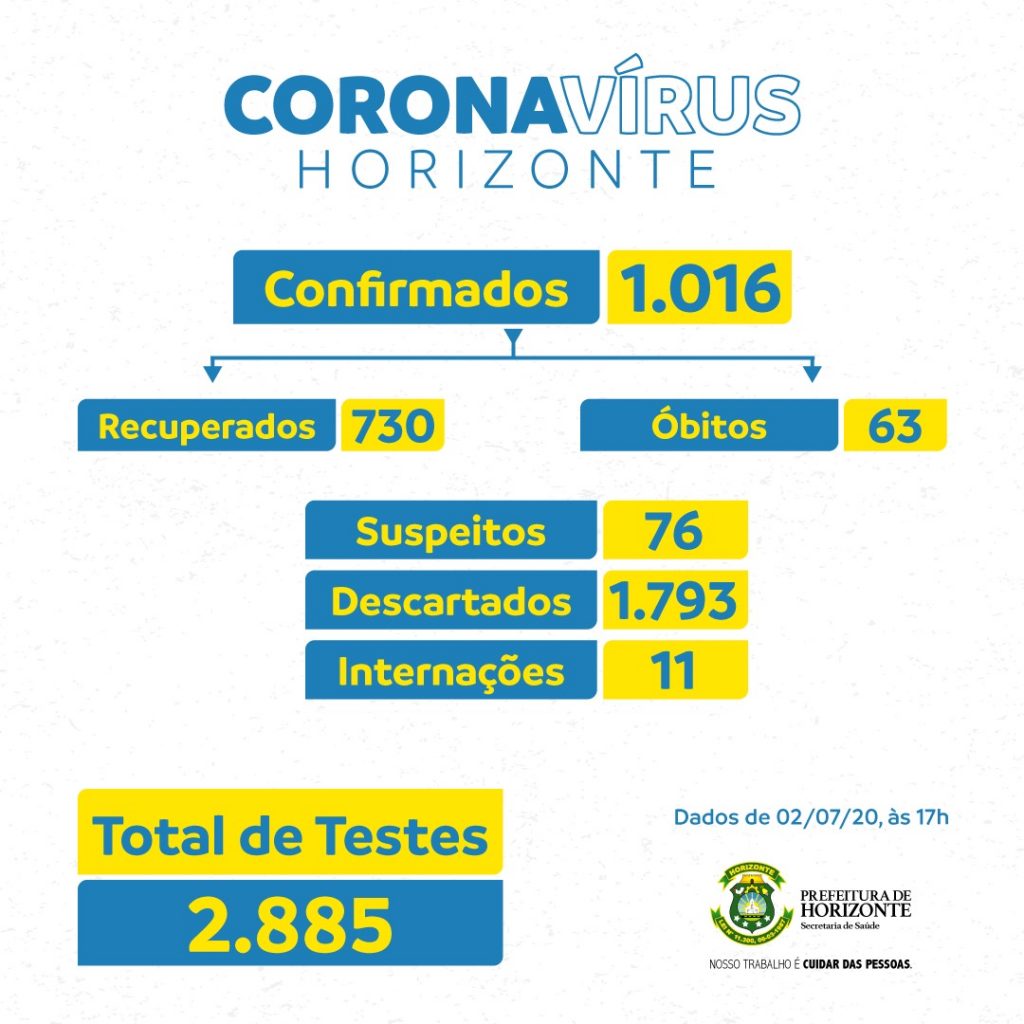 A Prefeitura de Horizonte, por meio da Secretaria de Saúde, informa que dois novos óbitos por Covid-19 foram registrado hoje (2), após resultado de exame.