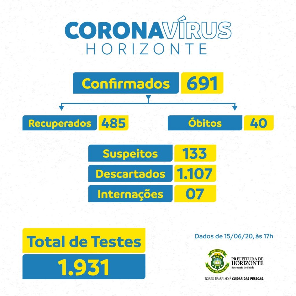 Foi identificado divergência entre os dados deste boletim e os da plataforma IntegraSUS, do Estado do Ceará, devido várias duplicidades de pacientes na plataforma. A Secretaria de Saúde de Horizonte informou ao IntegraSUS e a correção deve ocorrer nos próximos dias.