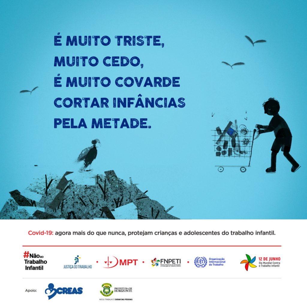 Com o cenário de pandemia, o problema se torna ainda mais grave. Este ano, a campanha tem como tema: "Covid-19: agora mais do que nunca, protejam crianças e adolescentes do trabalho infantil".