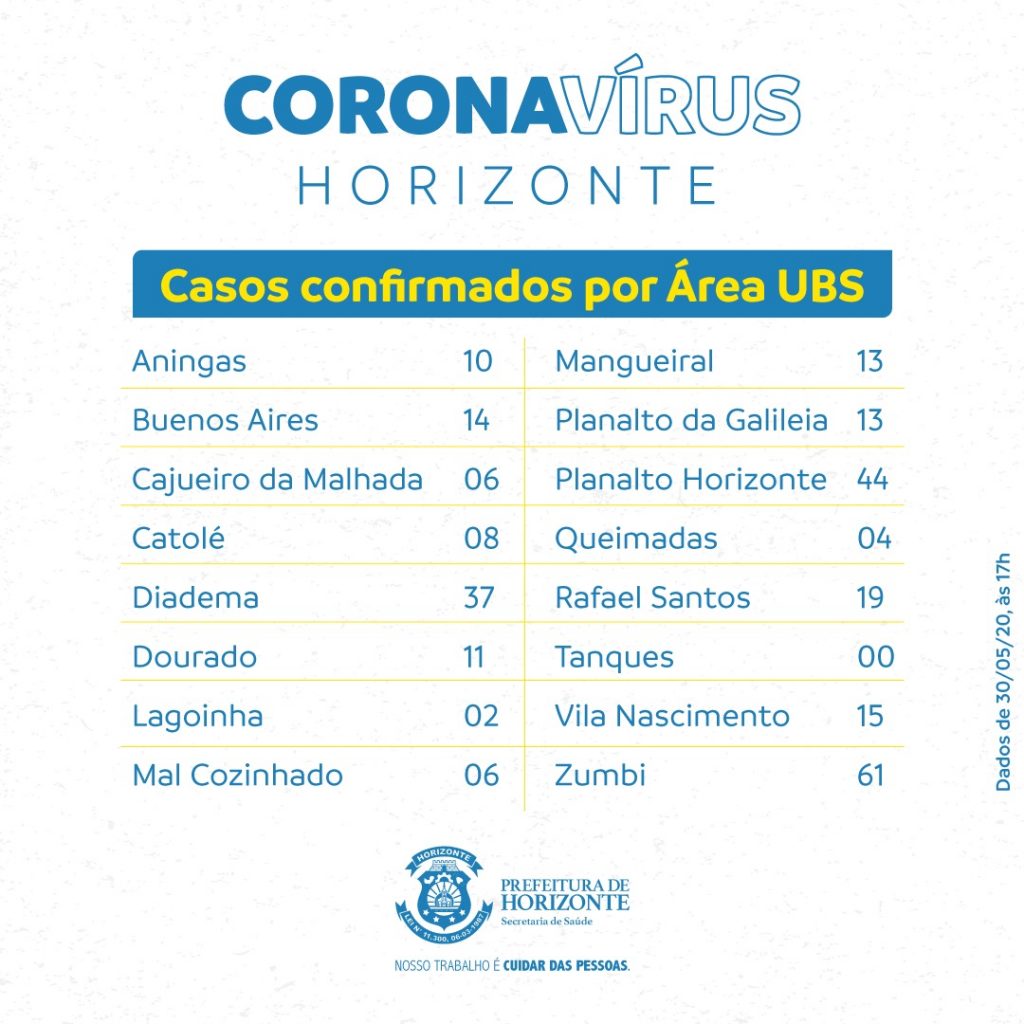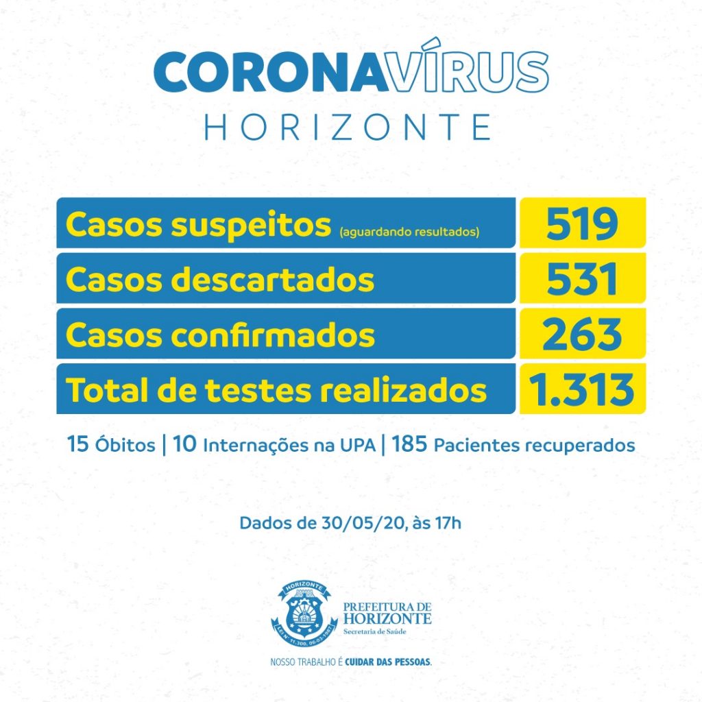 Assim, Horizonte passa a registrar 15 óbitos decorrentes da Covid-19 e 263 casos confirmados, sendo que 185 destes pacientes já estão recuperados.