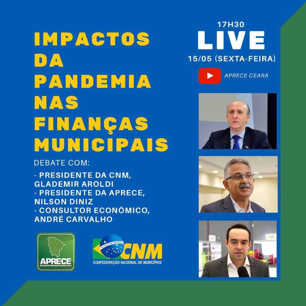 Na próxima sexta-feira (15), às 17h30, a Aprece realizará, em parceria com a Confederação Nacional de Municípios (CNM), um debate sobre os Impactos da Pandemia nas Finanças Municipais.