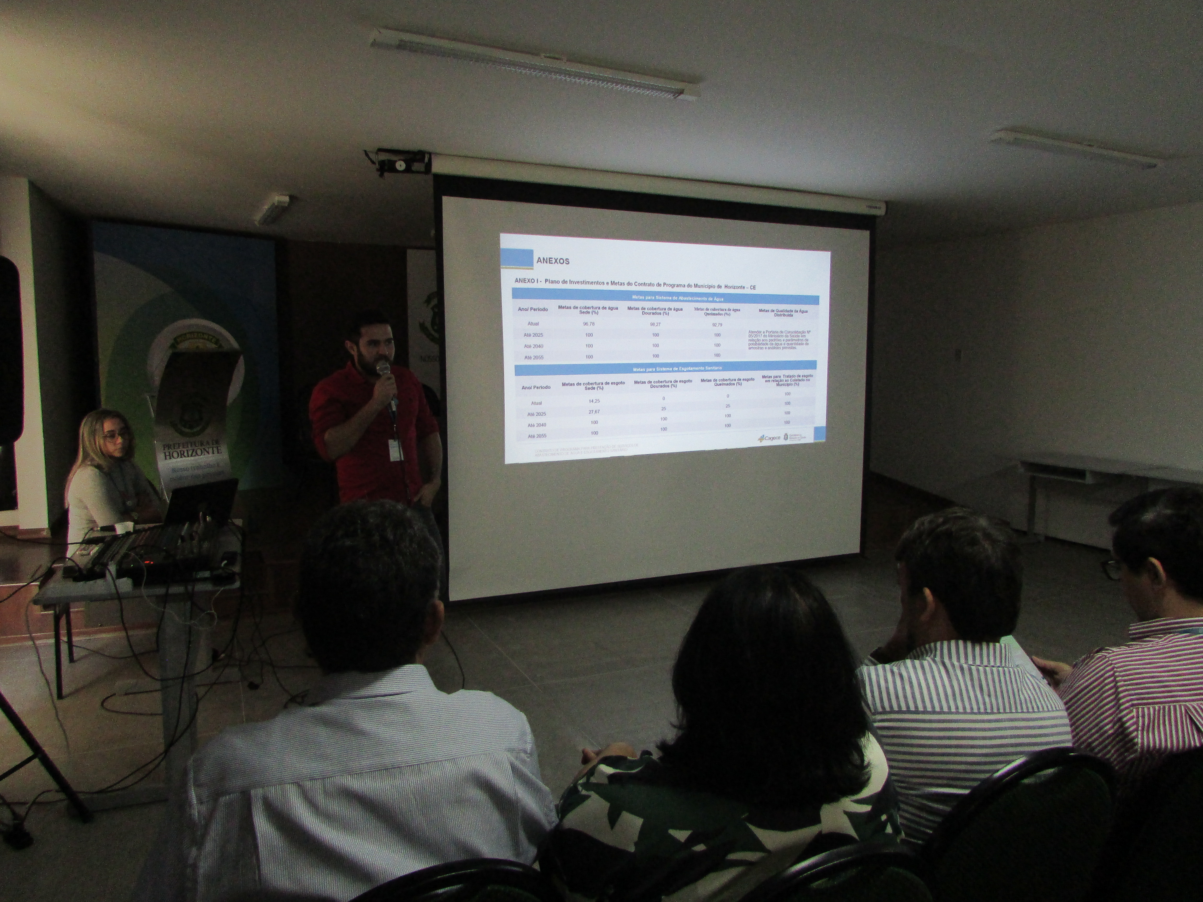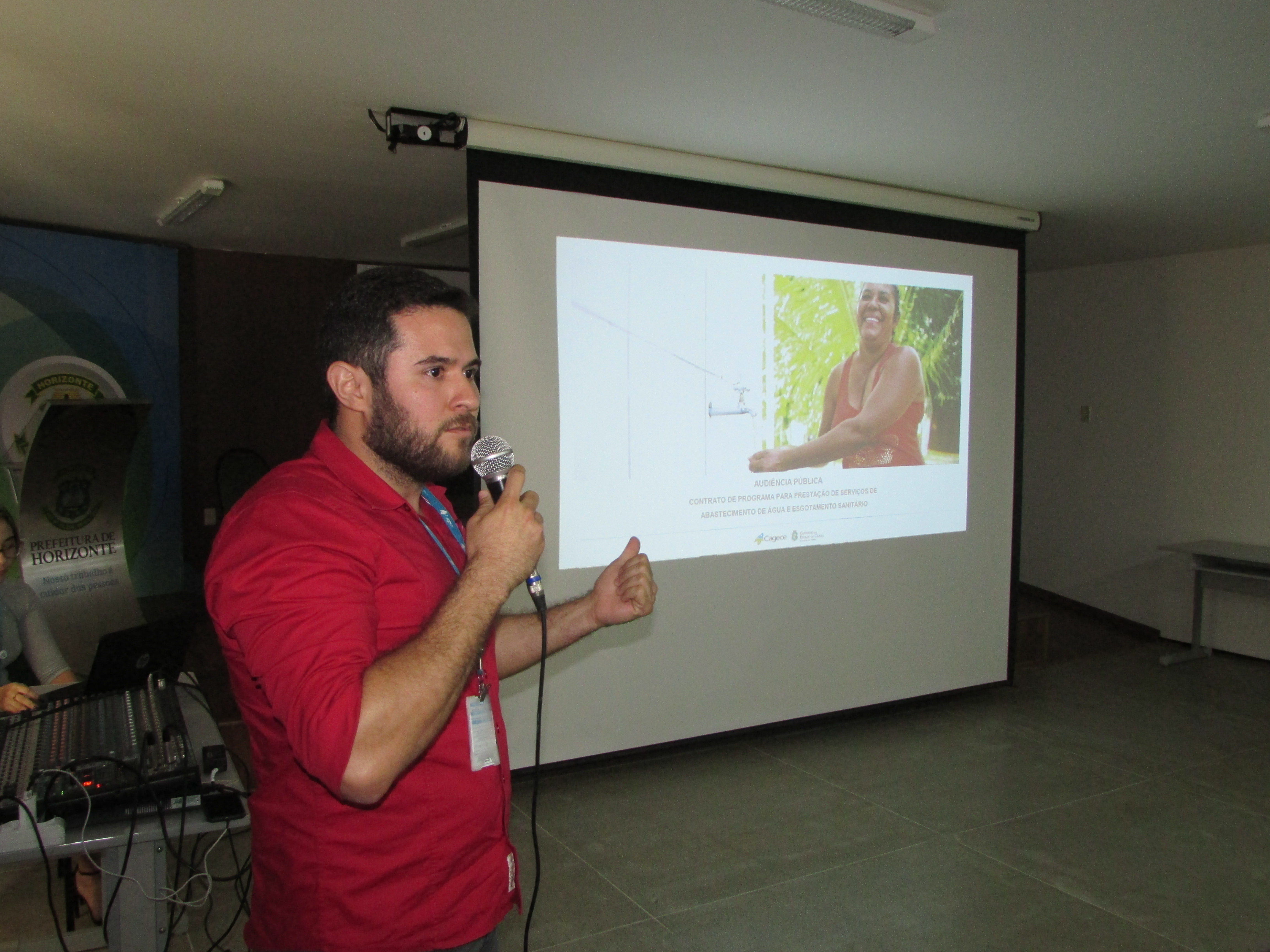 A Prefeitura Municipal de Horizonte realizou nesta segunda-feira, 21, no Centro Administrativo Domingão, audiência pública para consulta e esclarecimentos sobre o programa de universalização do abastecimento de água e esgotamento sanitário no Município.
