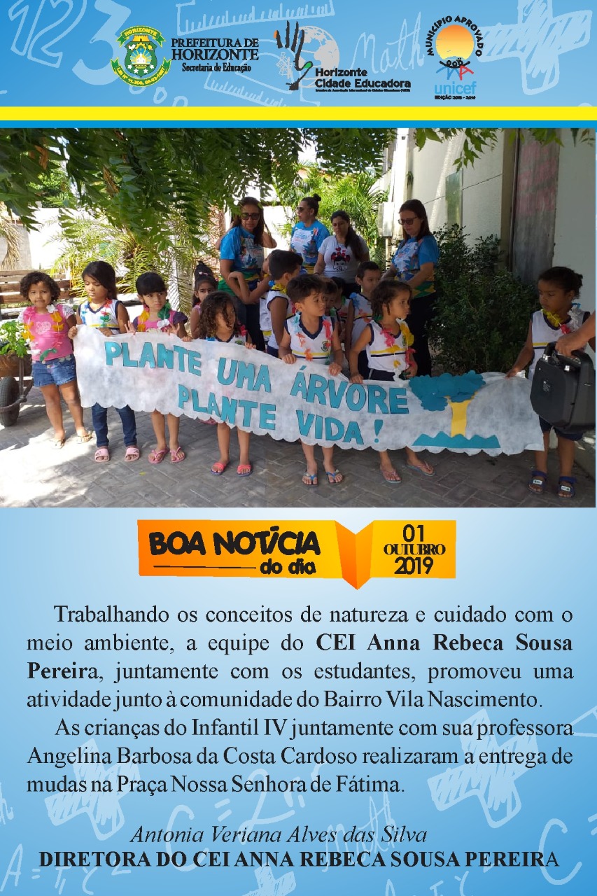 Boa Notícia do Dia: CEI Anna Rebeca Sousa desenvolve educação ambiental