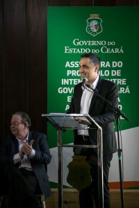 Ao lado do Governador Camilo Santana, o Prefeito de Horizonte, Chico César, assina o protocolo de intenções para a instalação da fábrica do grupo Klabin no Município (Foto: Nicolás Leiva).