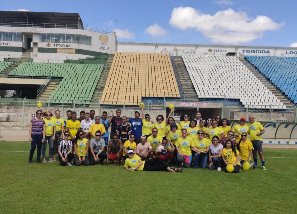 Aproximadas 50 pessoas participaram hoje, 17, da atividade "Futebol pela Vida" no Estádio Olímpico Horácio Domingos de Sousa, promovida pela Prefeitura Municipal de Horizonte, através da Secretaria de Saúde. A ação faz parte da Campanha Setembro Amarelo de Prevenção contra o Suicídio no Município e é coordenada pelos profissionais de saúde mental.