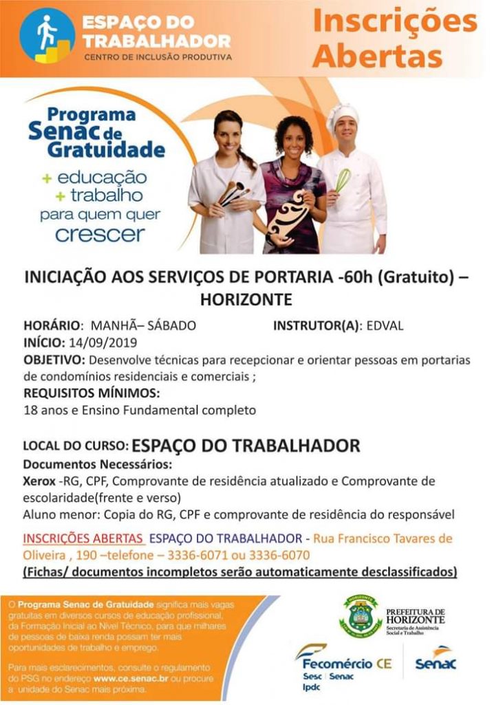 Espaço do Trabalhador abre inscrições para curso de serviço de portaria